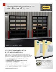 Clopay Models 3728 (flush/no ribs) and 3729 (with minor ribs) are a smart choice for applications requiring visibility, natural light, strength, and energy efficiency.