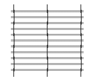 • Formed with horizontal rods 1 1/2″ apart, connected by vertical links 9″ apart. Bottom of curtain is reinforced by an extruded aluminum tubular footpiece.