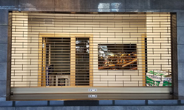 Offered in situations where the opening is larger than the door. A static grille curtain is supported by a frame and secures the opening beyond the rolling grille section while providing a continuity in appearance.