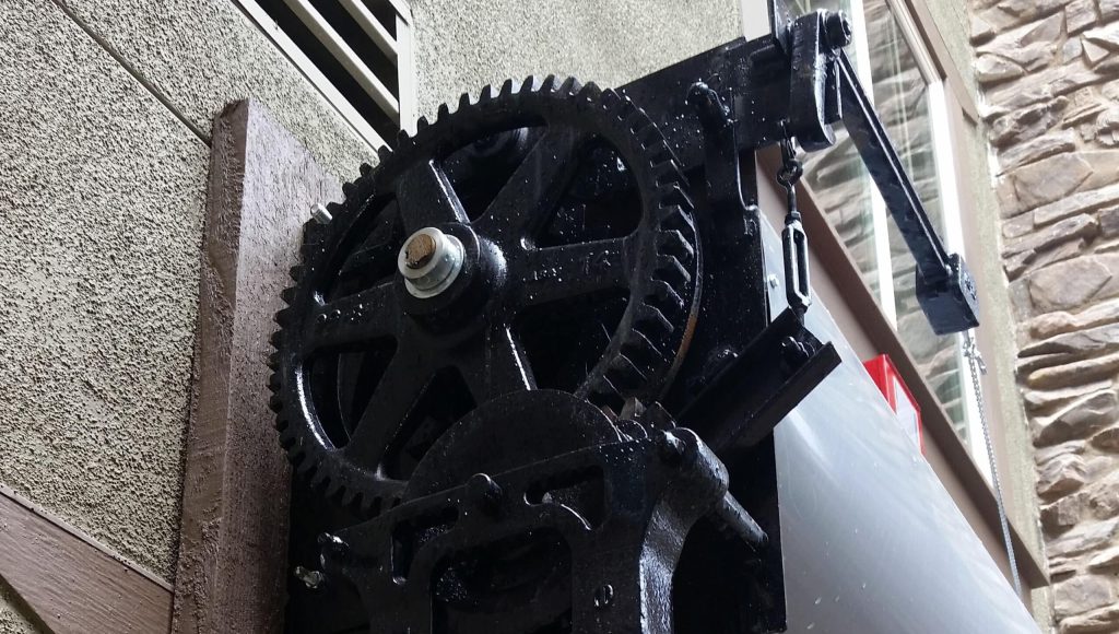 Push-up to 14′ wide and awning crank on larger sizes is standard (awning crank should be considered when doors are to be operated over a deep counter of over 7′ high). Chain hoist or motor operation are optional.