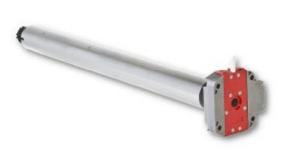Motors completely contained within the barrel can be provided for counter doors in limited usage applications. Only the manual crank override is visible outside the bracket.