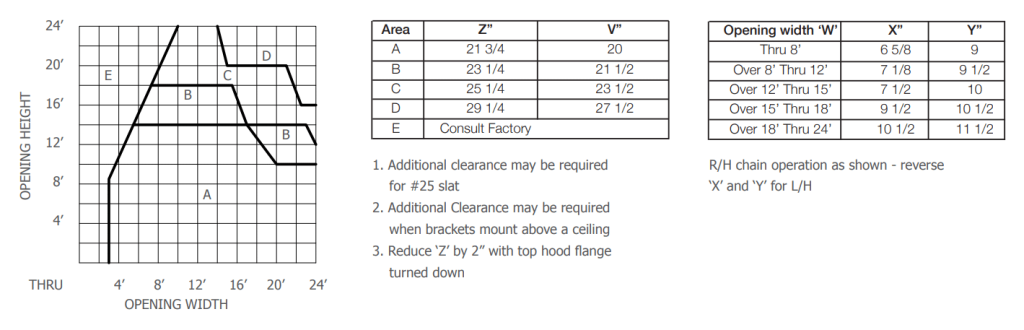Push-up to 8’ wide and high and chain hoist on larger sizes is standard; awning crank, crank box or motor operation are optional.