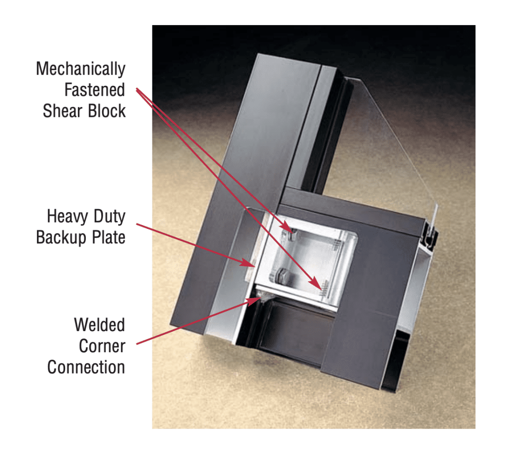 - Mechanically fastened shear blocks and welded corner construction